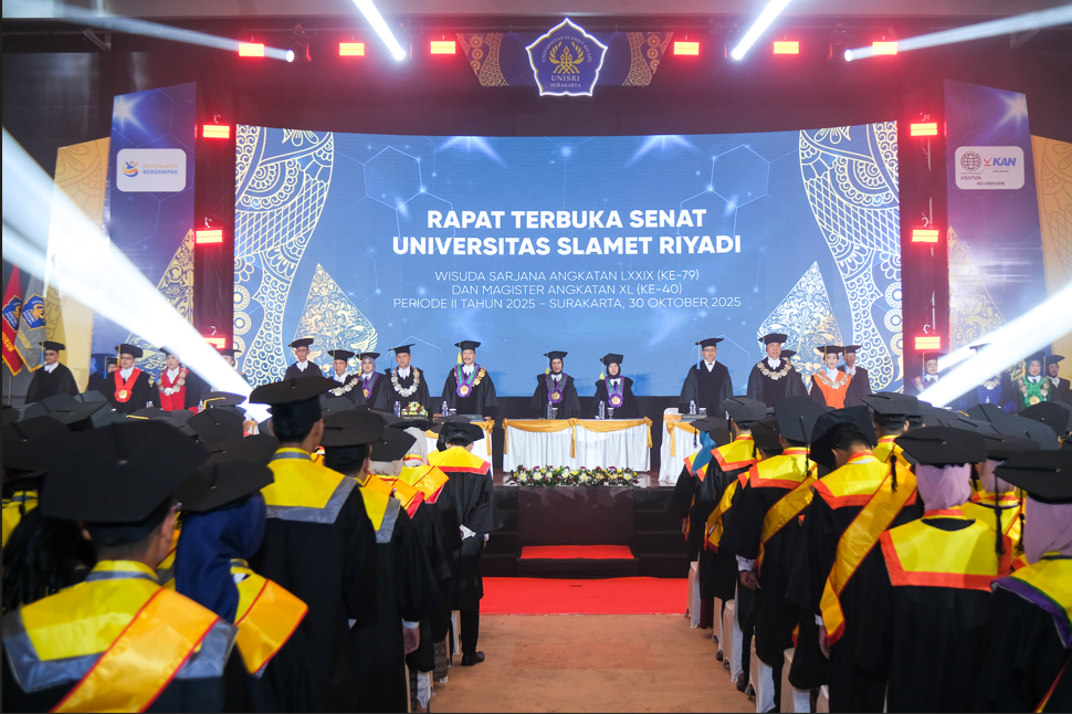 Surakarta, 30 Oktober 2025 — Universitas Slamet Riyadi (Unisri) Surakarta kembali menggelar upacara wisuda bagi 807 mahasiswa program Sarjana (S1) dan Magister (S2) dalam Wisuda Periode II Tahun 2025 di The Tjolomadu. Acara ini menjadi momentum penting bagi para lulusan untuk menandai keberhasilan mereka menempuh pendidikan tinggi dan siap berkontribusi bagi masyarakat.